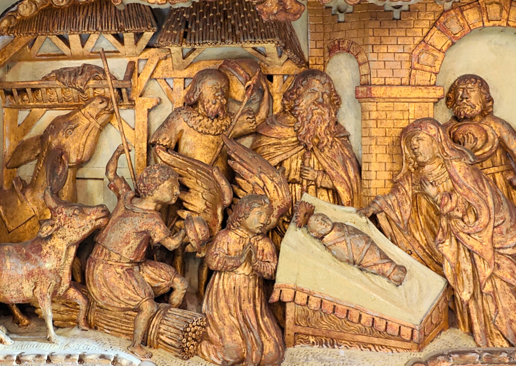 Det kostede siden barnet livet. Som voksen blev Jesus korsfæstet. Men hadet og døden fik ikke bugt med barnet. Derfor er dét barns fødsel blevet centrum i alteret – og fundamentet i vores tro. Badet i et gyldent skær, der henter sin glans fra evigheden.