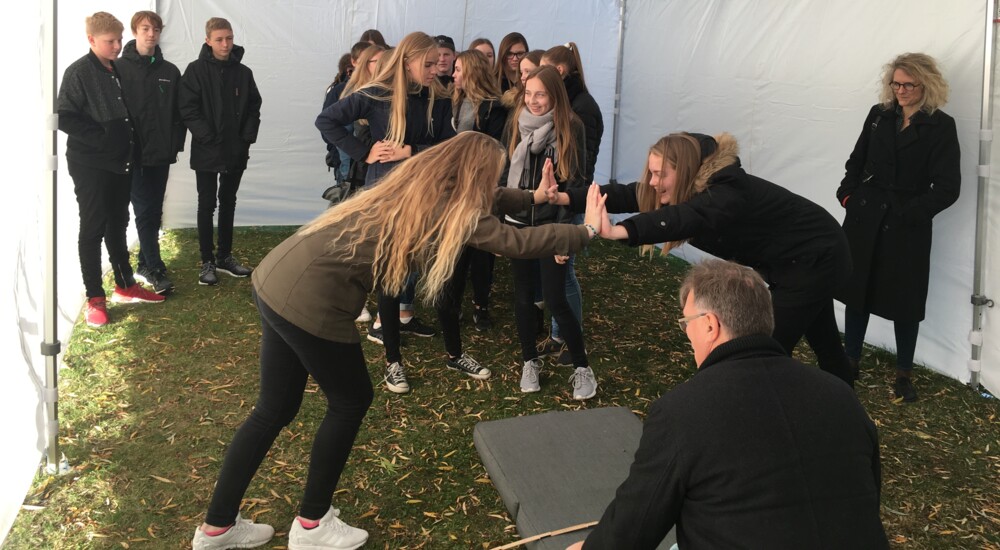 Herefter bliver de bedt om at lade sig falde bagover med ryggen til en andens favn, inden Esper Silkjær fortæller om Martin Luthers understregninger af vigtigheden af tillid mellem mennesker.