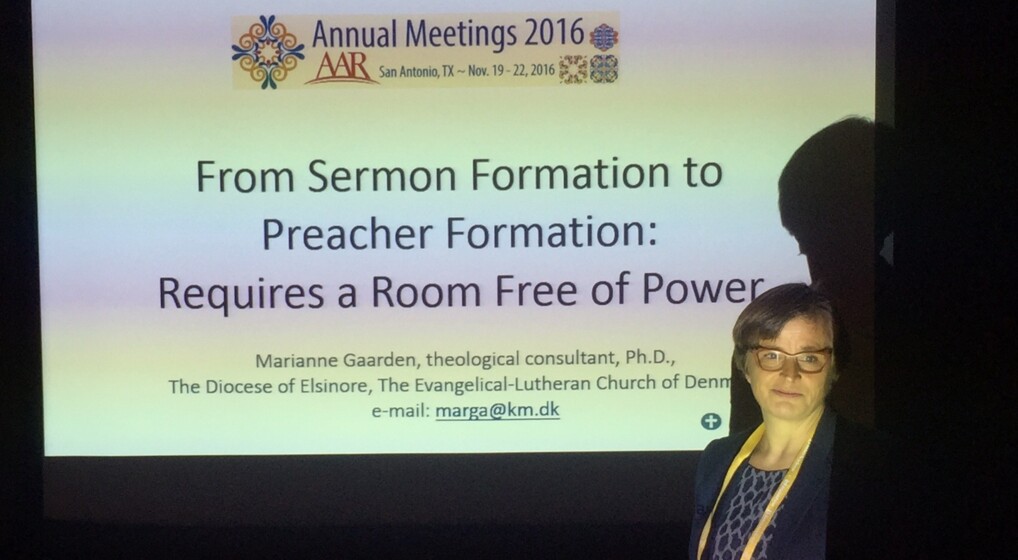 Konferencen American Association of Religion (AAR) fandt sted i San Antonio med over 10.000 deltagere. På opfordring fra en gruppe forskere, der arbejder med praktisk teologi, holdt Marianne Gaarden en forelæsning om sin metode, “Fra prædikendannelse til prædikantdannelse.”