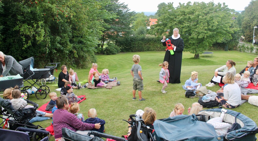 Høstgudstjeneste i præstegårdshaven er en fast tilbagevendende tradition i Lynæs. (Foto: Sarah Thorngreen Auken)