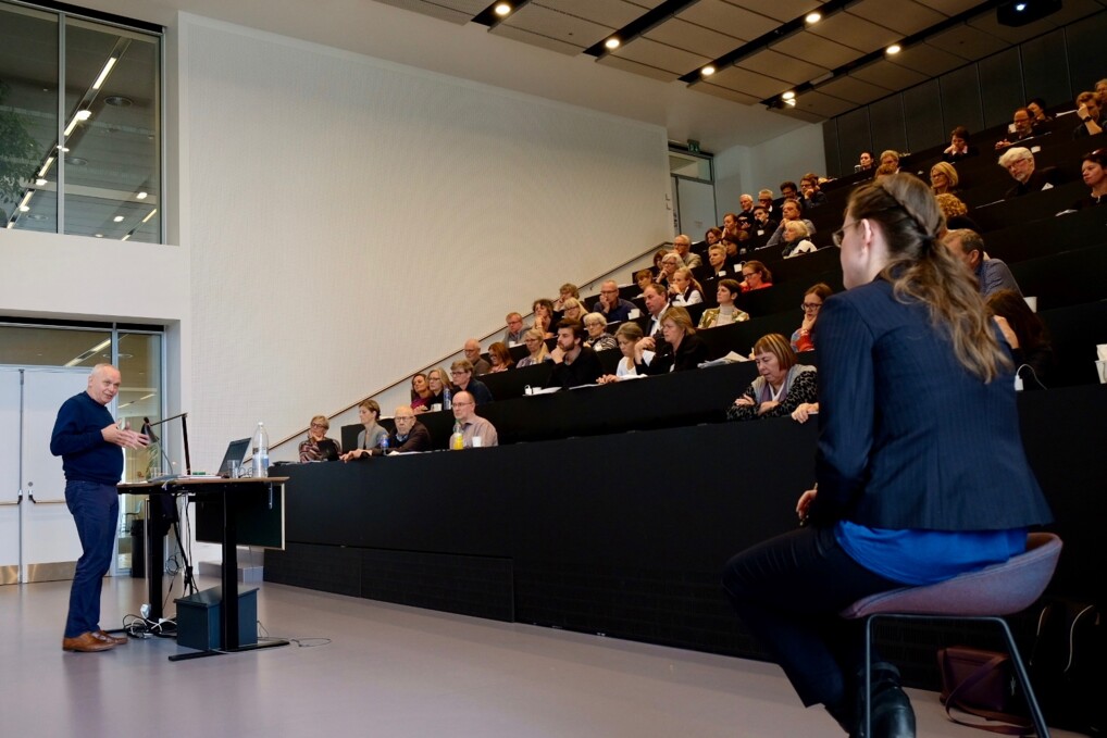 Efter at Sofija Pedersen Videke havde fortalt om arbejdet med den svenske ritualbog, blev hun udfordret af Jørgen Demant fra Lyngby Kirke. Blander I ikke det religiøse sprog sammen med videnssproget, spurgte han. (Foto: Malene Bjerre)