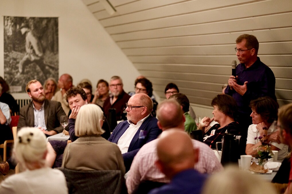 Faktisk er det heller ikke kun 50 mennesker, der er mødt frem. Der må hentes ekstra stole i museets cafe nedenunder, og i alt deltager omkring 70 mennesker i salonen, der indledes med et indlæg fra hver af de to oplægsholdere Jonas Christoffersen, direktør for Institut for Menneskerettigheder, og Anna Libak, journalist, forfatter og folketingskandidat for Venstre.