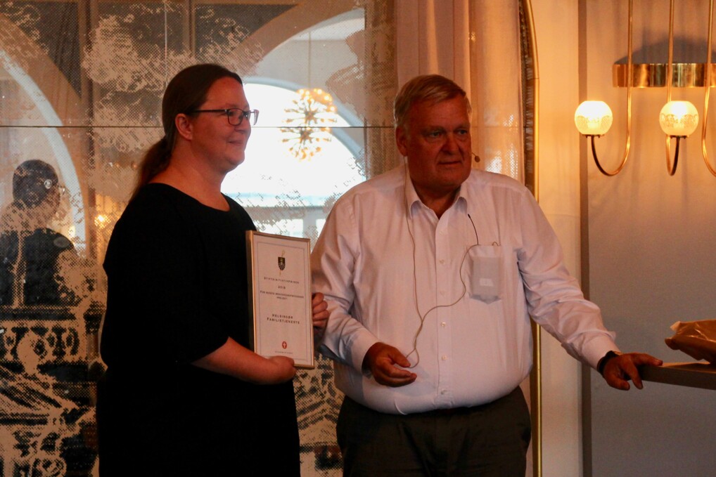 Mette Dansøn, der er leder af Helsingør Familietjeneste, fik overrakt diplomet for Initiativprisen 2018 af formanden for Stiftsrådet, Søren Ødum Nielsen. (Foto: Stefanie Laursen)