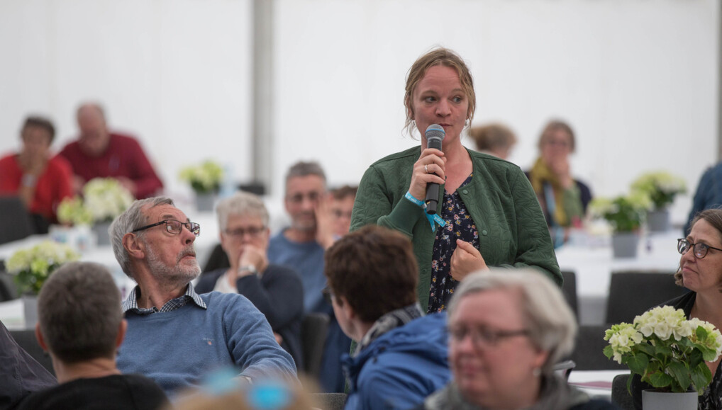 Spørgsmål fra salen ved fremlæggelsen af liturgirapporterne under Himmelske Dage i Herning 2019. (Foto: Henrik Vinther Krogh)