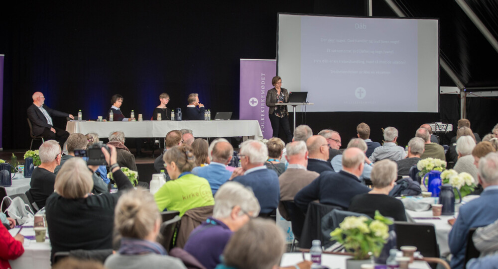 Fredag var den store dag for Folkekirkemøde, der foregik i et stort telt på Mulighedernes Marked. Her kunne man komme og gå fra et bredt sammensat program, der spændte over dåbens og nadverens betydning i en nutidig sammenhæng, folkekirkens diakonale og missionale forpligtelser og til mere generelle drøftelser af kirkens relation til det samfund, den er en del af.