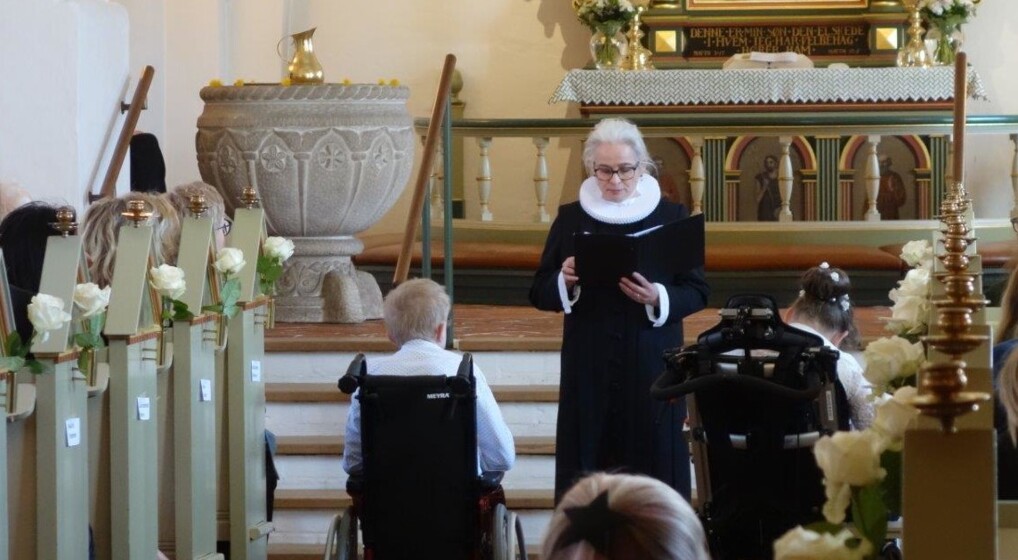 Pernille Bach-Mortensen konfirmerer børn fra Geelsgårdskolen (Foto: Jørgen Thøgersen Kristensen)