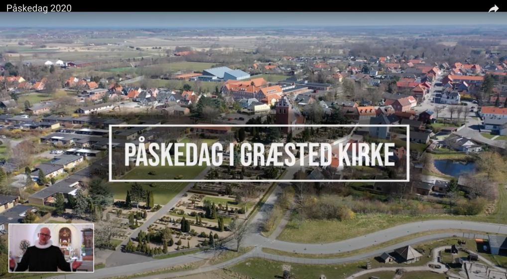 Over tusind visninger var der på gudstjenesten fra Græsted Kirke påskedag. (Screenshot fra YouTube)