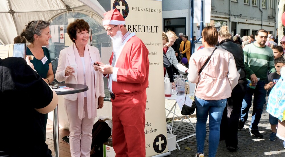 2019. Et sjældent møde mellem biskop og julemand. Foto: Sarah Auken