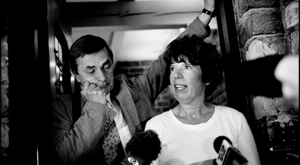 1995. Et kram efter stemmeoptællingen til vinderen fra forgængeren Johannes Johansen. Foto: Linda Kastrup/Scanpix Ritzau