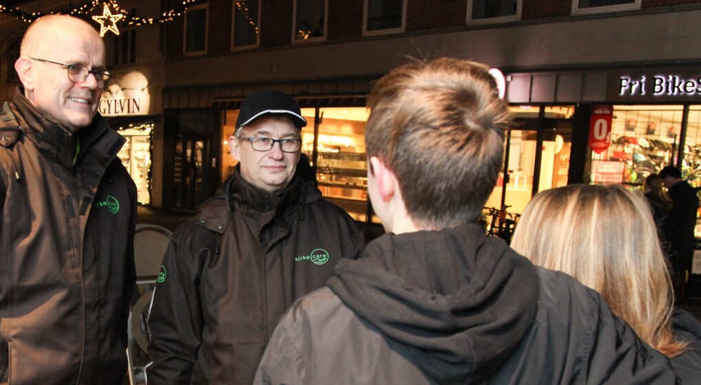 Thyge Enevoldsen - her på gågaden i Hillerød med projekt Kirkecare, der arbejder for tryghed, fred og fællesskab i byen. (Foto: Rune Hansen)