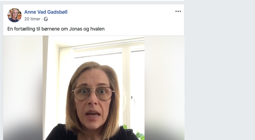 Anne Vad Gadsbøll fra Hendriksholm Kirke fortæller historier for børnene på Facebook