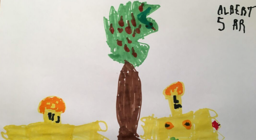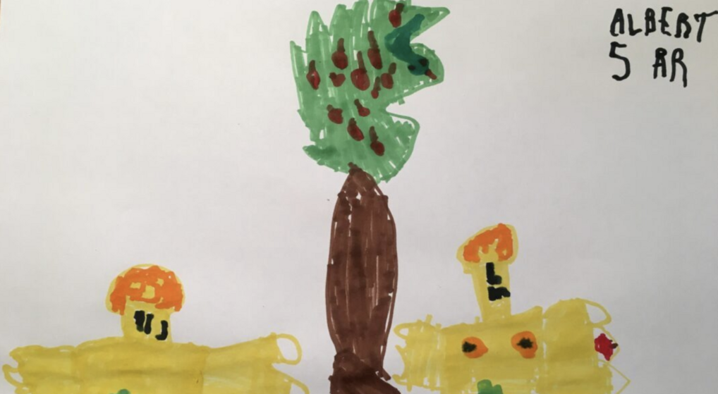 Kirkerne i Rødovre har oprettet en fælles Facebookside, hvor de blandt andet har lavet en tegnekonkurrence for børn. Her har Albert tegnet Adam og Eva.