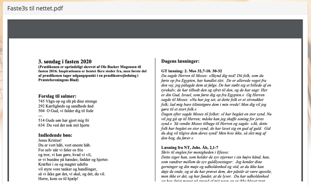 Græsted Kirke lægger materialet til søndagens gudstjeneste ud på nettet: bøn, læsninger og prædiken, så folk kan holde hjemmegudstjeneste.