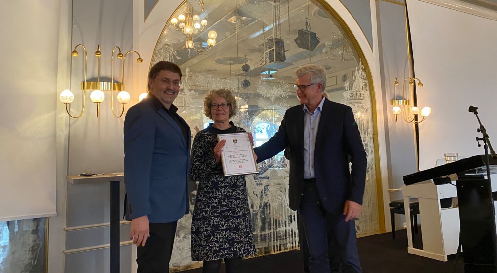 Sognepræst fra Haraldskirken Morten Miland og medlem af provstiets diakoniudvalg Hanne Ougaard modtog initiativprisen på vegne af Tværkulturel Kirke (Foto: Malene Bjerre)