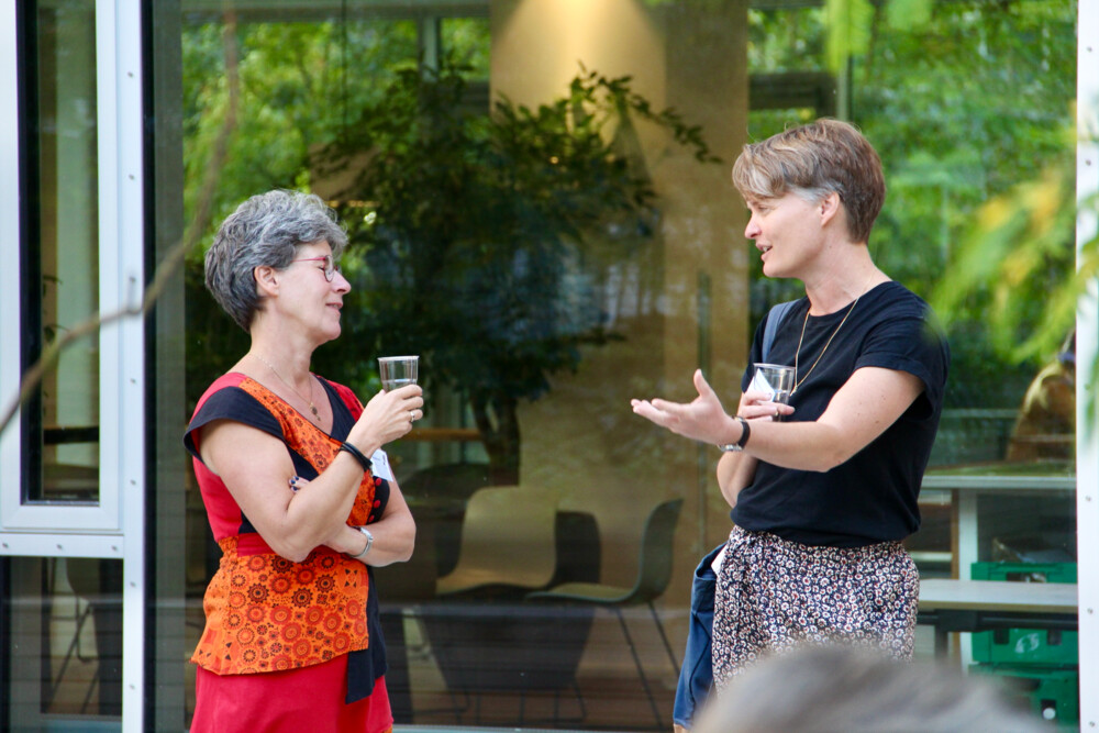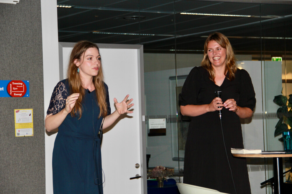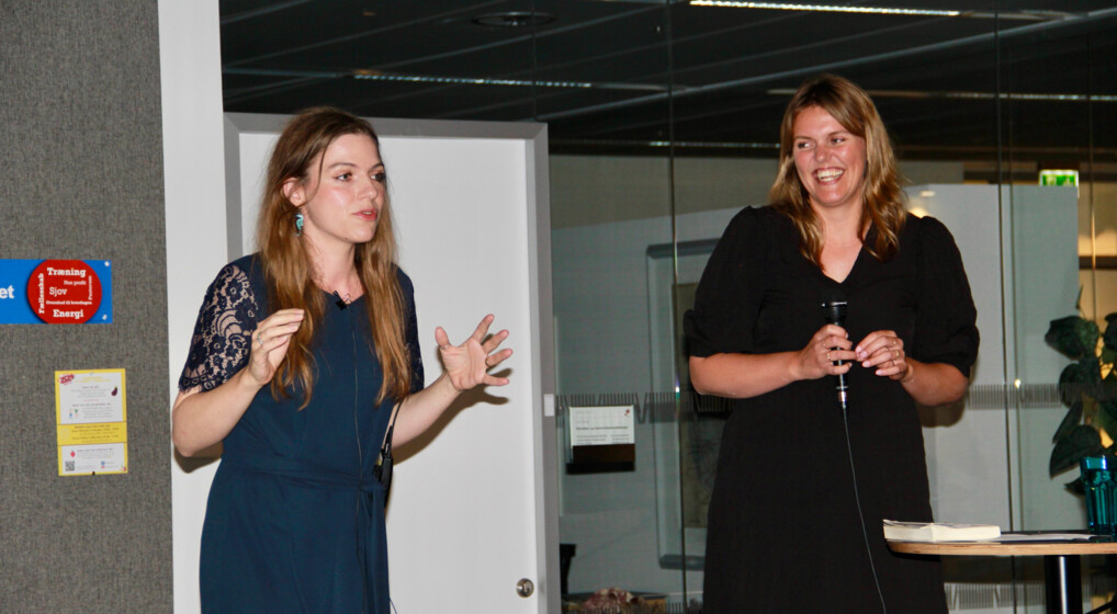 Forfatter Stine Pilgaard og komponist Katrine Muff Enevoldsen holdt romankoncert om om vestjysk samtalekunst og nye højskolesange. Foto: Morten Bangsgaard