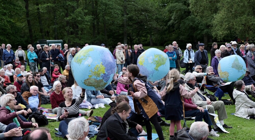 Og den opfordring tog menigheden med det samme til sig, da der under Dy Plumbecks salme "Hold håbet op" blev sendt store badebolde formet som jordkloder ud blandt menigheden. De blev kastet rundt til både børn og barnlige sjæles store fornøjelse.