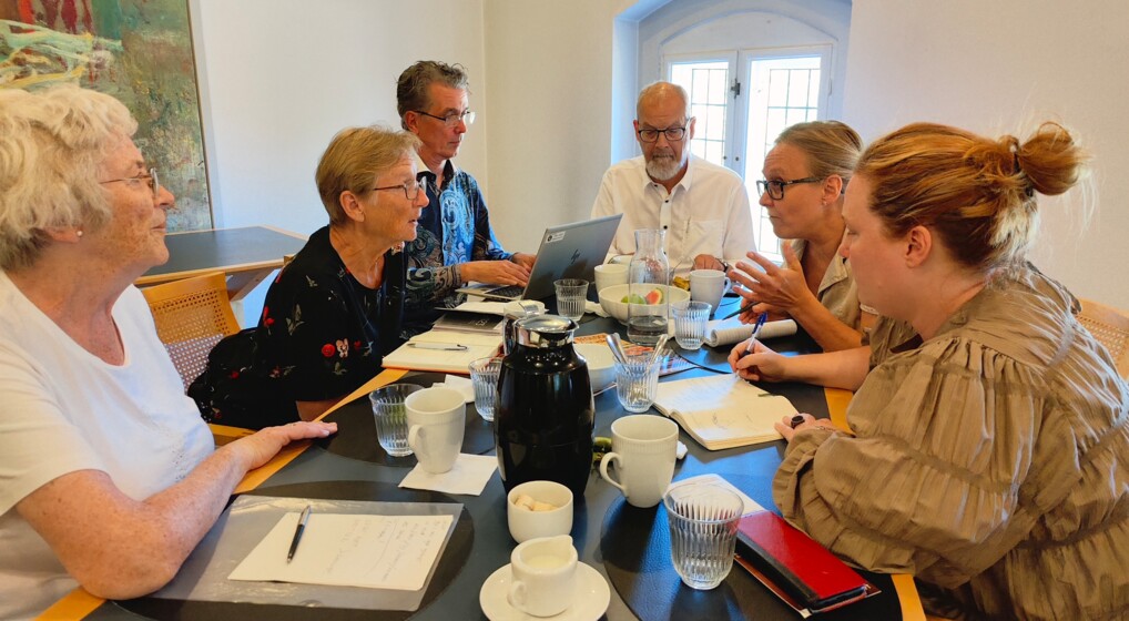 To kordegne, to menighedsrådsmedlemmer, en administrativ leder og en præst var mødt op fra Skovlunde Kirke for at høre mere om kommunikationsstrategi. Foto: Sille Arendt