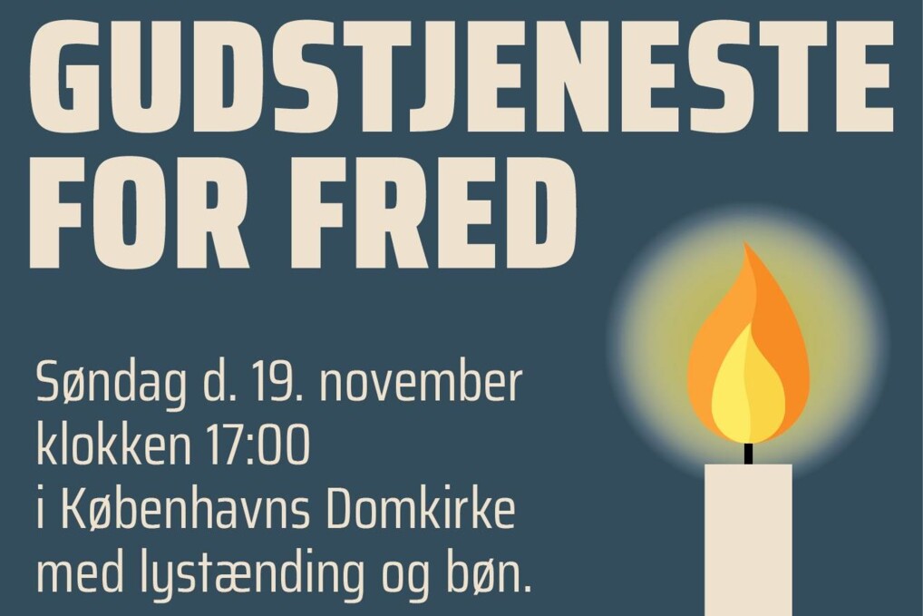 Derfor arrangerer Folkekirkens Nødhjælp, Folkekirkens Mellemkirkelige Råd, Danske Kirkers Råd og Københavns Domkirke en gudstjeneste med bøn for fred i verden, med nadver og fælles lystænding.