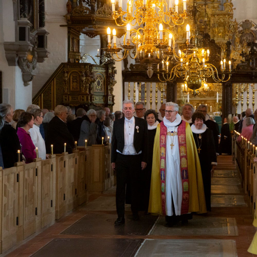 Biskop Peter Birch og stiftsamtmand Henrik Horster førte an i præsternes procession. Foto: Sille Arendt.