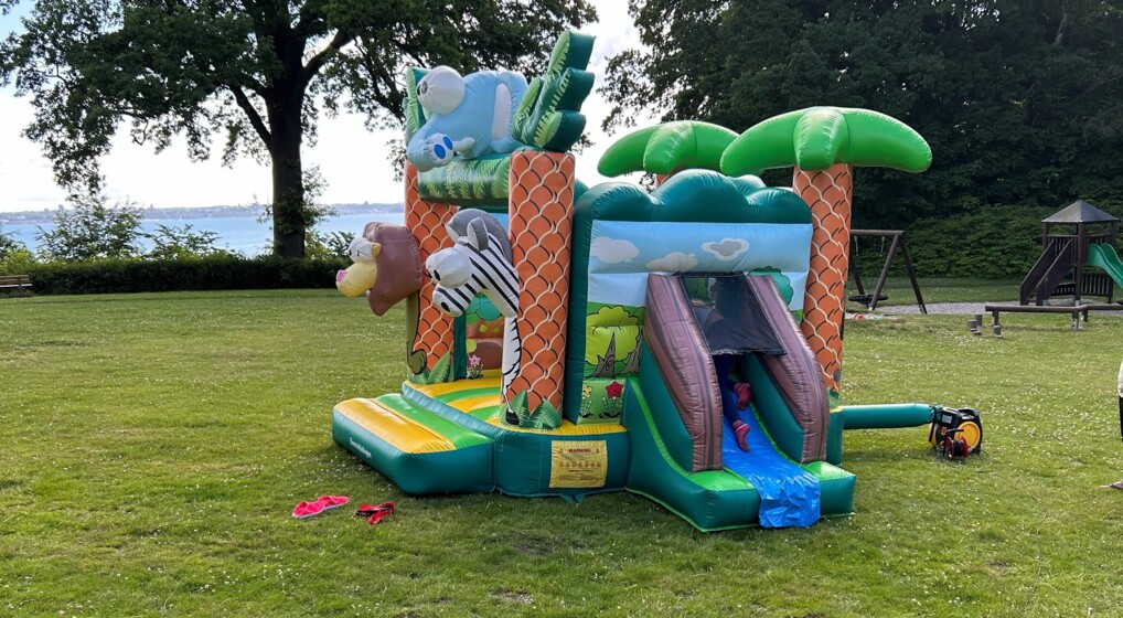 Folkekirkens Feriehjælp giver en håndsrækning til familier, der trænger til en sommmerferie. Her er der gang i hoppeborgen i Helsingør. Foto: Jette Hansen, Brøndby Strand Kirke.