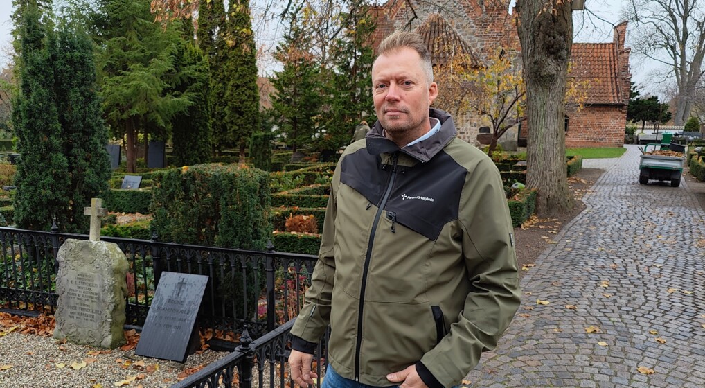 Kirkegårdsleder Brian Worm Jensen på Farum Sogns gamle kirkegård. Foto: Benjamin Birk Christophersen.