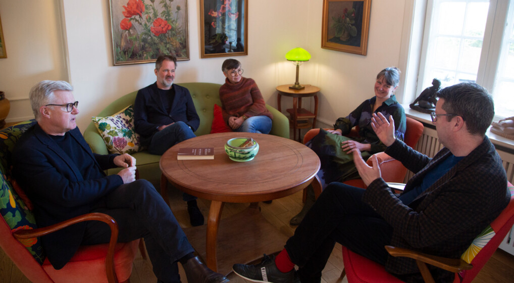 De fire præster som deltog i embedsbyttet i 2023 mødtes med Biskoppen efter bytteperioden for at evaluere oplevelsen. Fra venstre er det biskop Peter Birch, sognepræst Jannik Theilgaard (Gl. Holte Sogn), sognepræst Kirsten Jørgensen (Pederstrup Sogn), sognepræst Else Korsholm (Esbønderup og Villingerød Sogne) og sognepræst Thomas Gylnæs Nielsen (Risbjerg Sogn). Foto Sille Arendt.