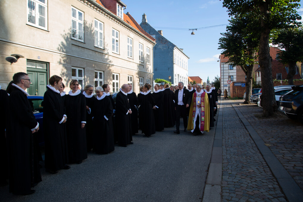 Alle rejser sig. Dørene går op, og i procession går stiftets provster og præster op ad kirkegulvet med biskop Peter Birch og stiftamtmand Henrik Horster i spidsen. Årets landemode er skudt i gang.