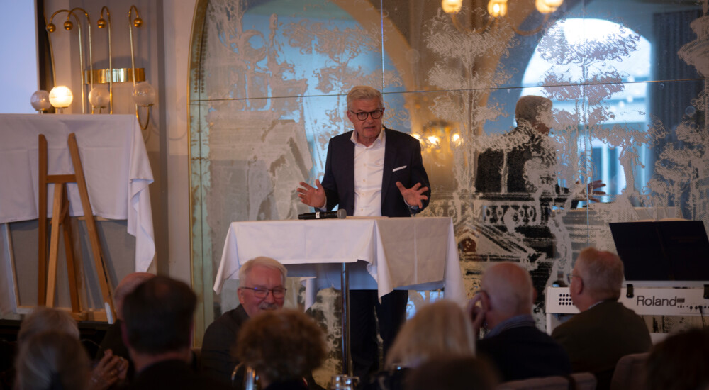 Efter maden træder biskop Peter Birch på talerstolen for at præsentere sin årsberetning.