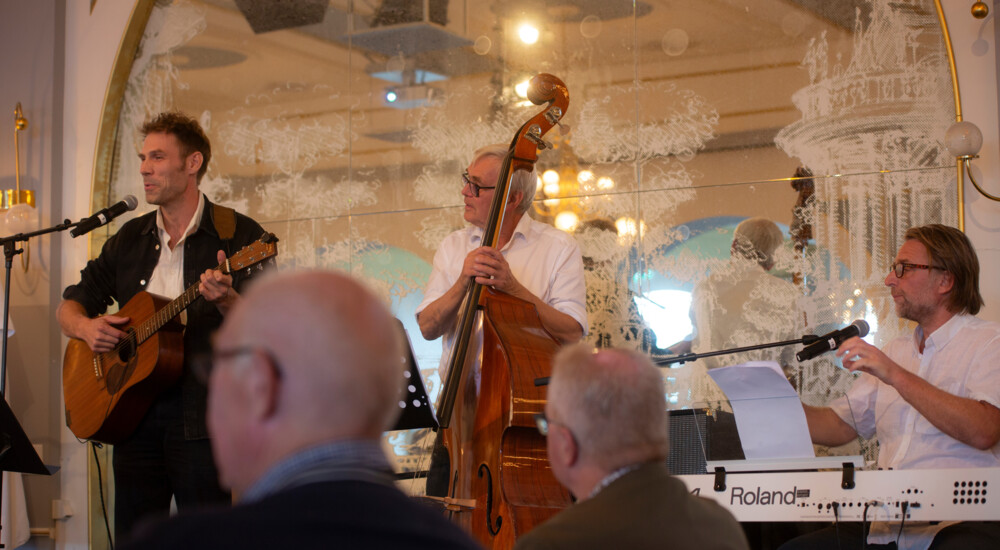 Det er nu blevet tid til lagkage, og mens kopperne efterfølgende tømmes for kaffe, gør Ramløse/Annisse Kirketrio klar på scenen.