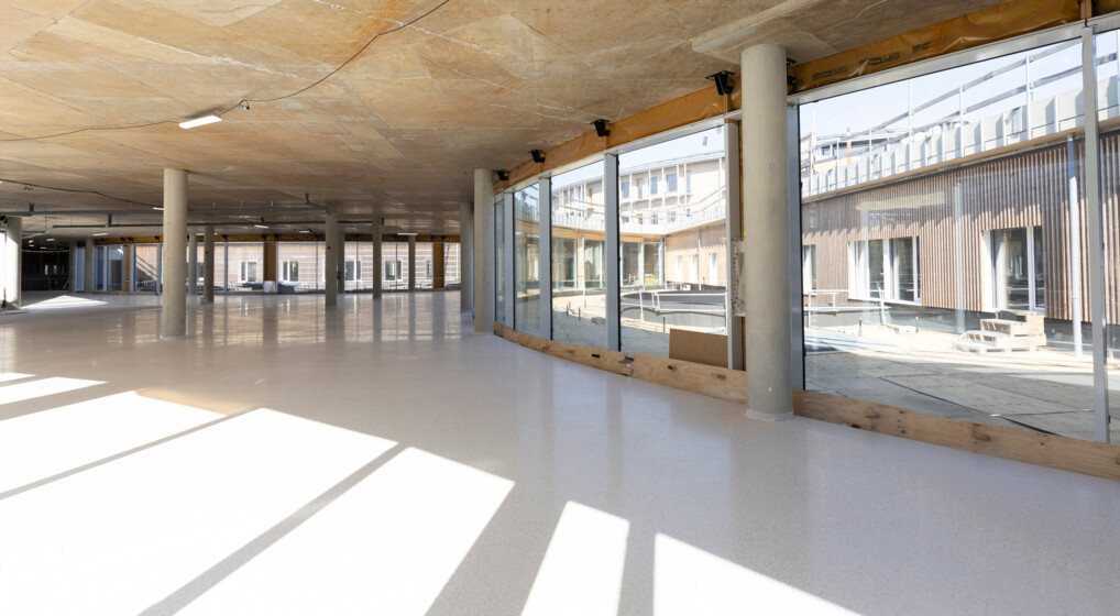 Terrazzogulvet i hospitalets lobby. Foto: Jonatan Grevsen, NCC.