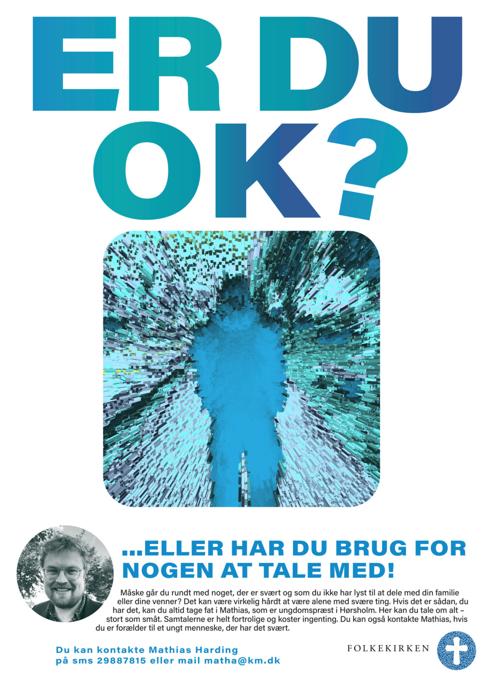 Når ensomheden gnaver, eller dialogen med forældrene går i hårdknude, er der én person, de unge altid kan gå til – nemlig ungdomspræst for kirkerne i Hørsholm Kommune, Mathias Harding. Og det budskab arbejder han på at få ud til de unge.